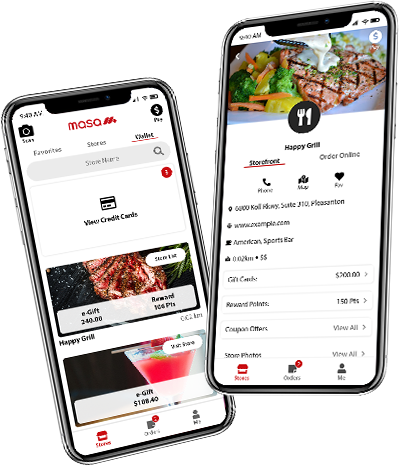 Using the Masa+ online ordering and payments solution is simple and fast. Scan a store’s QR code from a website, table tent card, or other posting to launch the solution on demand for one-time use. Or create an account to use the Masa+ Secure Wallet and pay by credit card or Masa+ Gift Card, Loyalty, and Rewards where accepted.